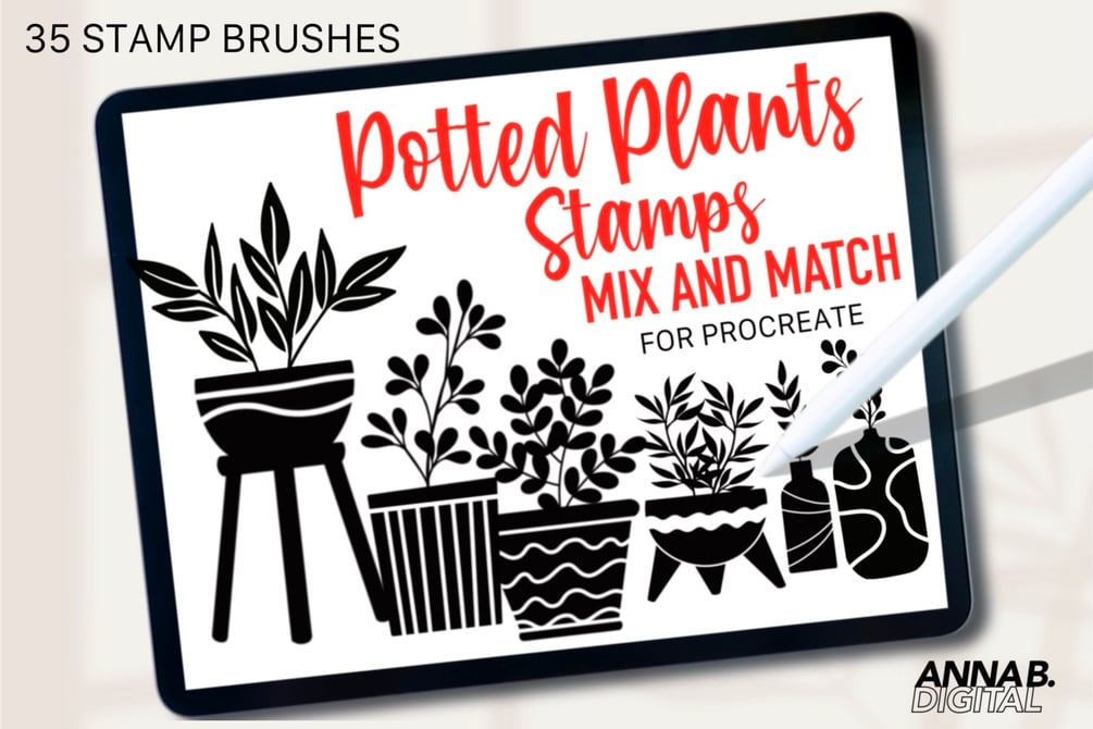 Introducing our Potted Plants Procreate Stamps - the perfect addition to any digital artist's collection!