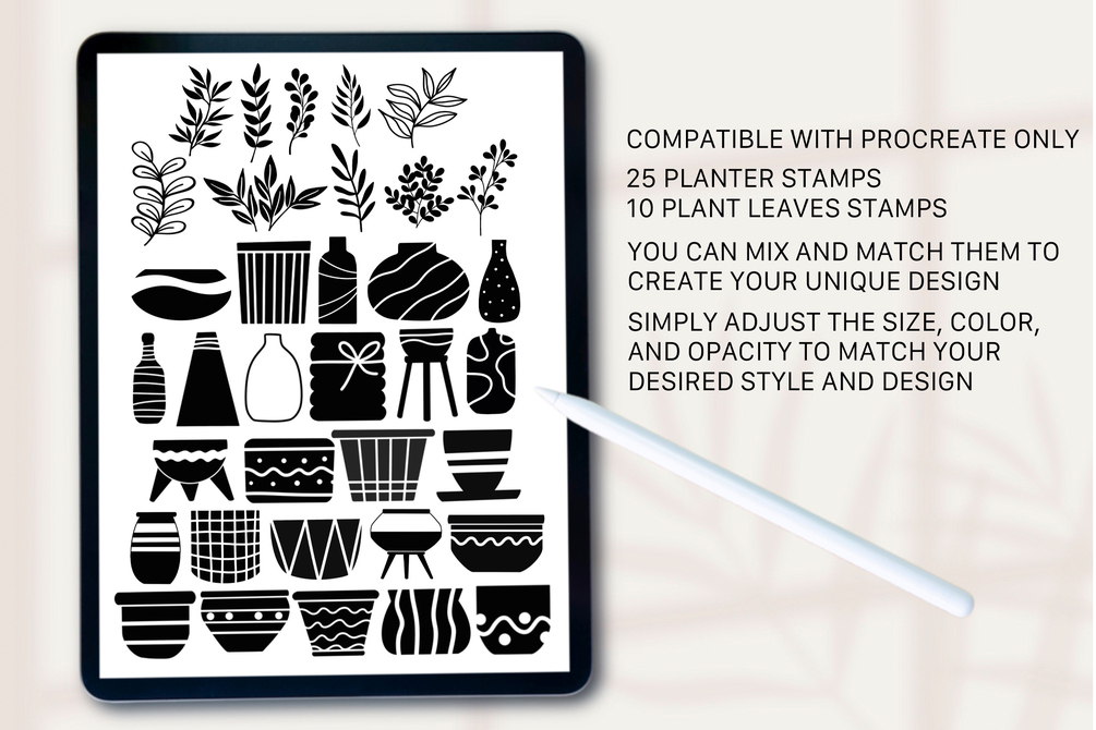 One of the great things about our Potted Plants Procreate Stamps is the flexibility they offer. Whether you're a beginner or a seasoned pro, you can easily use these stamps to create unique and eye-catching designs.